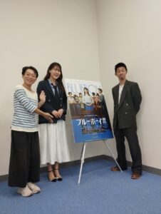 今週11月14日放送「デッキーの映画CaaaaN!!!!」では、11月14日公開映画『ブルーボーイ事件』(TOHOシネマズららぽーと富士見、イオンシネマ板橋などで公開)から飯塚花笑監督(写真左)と主人公サチを演じた女優・中川未悠さん(写真中央)。