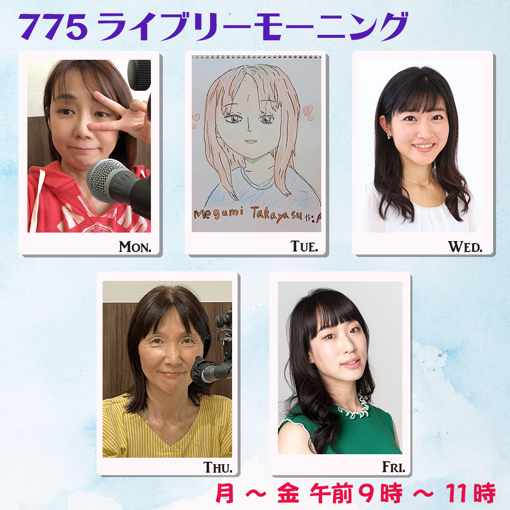 朝のピークタイムが少し落ち着く午前9時 775ライブリーモーニングがスタートします。 放送エリアに暮らすパーソナリティが、 地域情報や生活に彩を加える情報をお届けします。 もちろんメッセージやリクエストも大歓迎。 あなたのアクセスをお待ちしています。